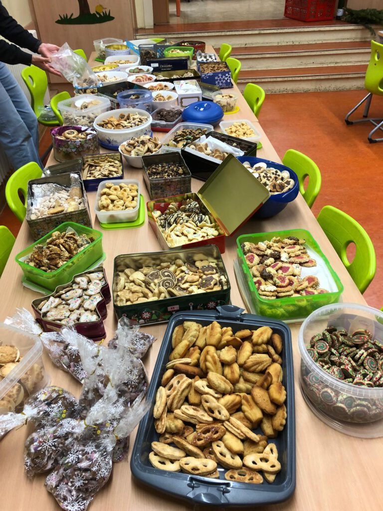 Bereits im Vorfeld hatten viele fleißige Elternhäuser unserer Schule mit großem Engagement gebacken. Durch ihren Einsatz entstand eine beeindruckend große Menge an verschiedensten Weihnachtsleckereien – von Klassikern wie Vanillekipferln bis hin zu kunstvoll verzierten Plätzchen.