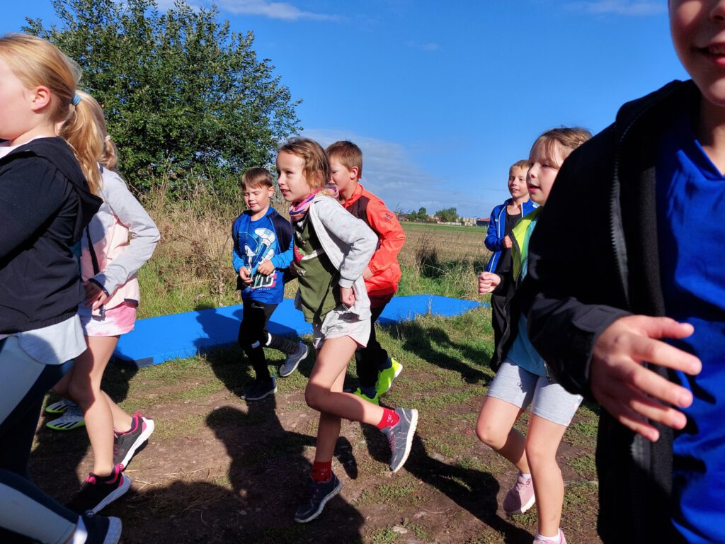 Für die 3. Klassen hieß es dann: doppelte Strecke, doppelter Einsatz! Zwei Runden à 800 Meter – insgesamt also 1,6 km – verlangten den Kindern einiges ab. Doch auch hier wurde mit Begeisterung gelaufen und beeindruckende Ergebnisse erzielt: